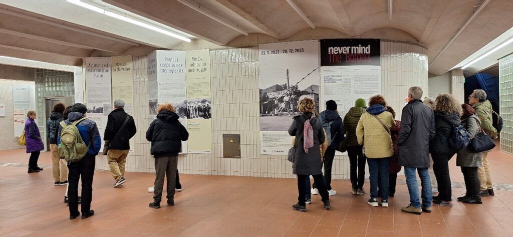 At the Maks bookshop and café in Nova Gorica she first presented them the OPEN BORDERS research project, then took them to the underpass of the Nova Gorica railway station, where they visited the Never Mind the Borders exhibition.