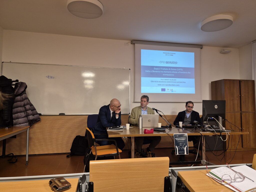 On 10 February 2026 at 5 p.m., the University of Verona hosted a public debate within the Calendario civile programme, dedicated to the history, memory, and legacy of the borderland after the signing of the Osimo Agreements of 1975. The event, titled Italy and Slovenia Between Divided Memories and Disappearing Borders, took place in Aula Messedaglia at the Cloister of Santa Maria delle Vittorie (Lungadige Porta Vittoria 41).